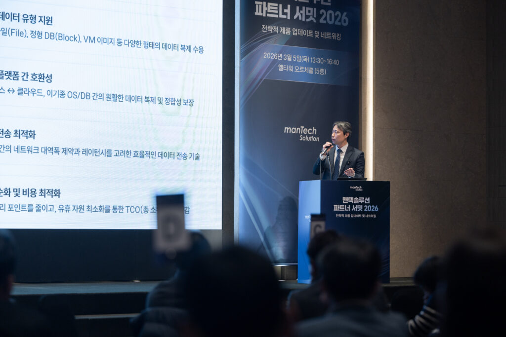 지난 3월 5일, 서울 양재동 엘타워에서 ‘맨텍솔루션 파트너 서밋 2026’이 성황리에 막을 내렸습니다. 급변하는 IT 인프라 환경 속에서 비즈니스 연속성을 확보하기 위한 혁신적인 기술 로드맵과 2026년의 전략적 비전이 공개된 이번 행사에는, 전국 파트너사 관계자 및 임직원 200여 명이 참석해 미래를 향한 협력의 의지를 다졌습니다.