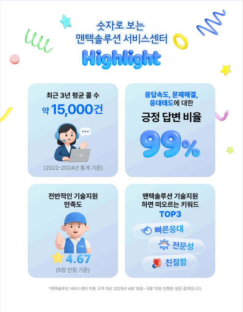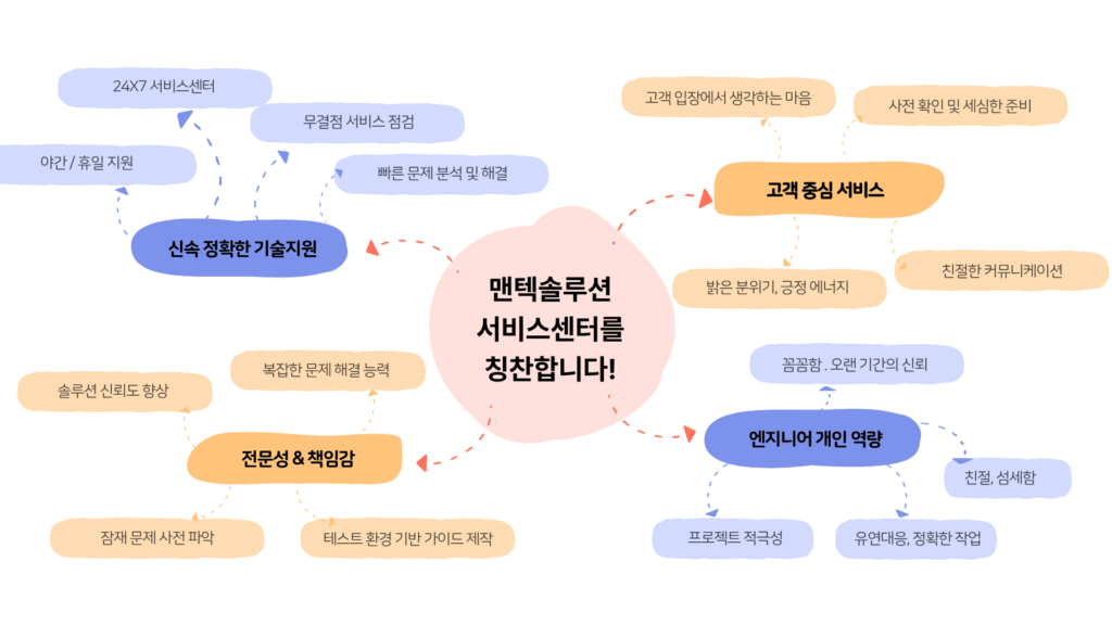 많은 분들이 맨텍솔루션 서비스센터와 엔지니어의 칭찬 후기를 남겨주신 가운데, 키워드와 함께 우수 후기 몇 가지를 소개해드리겠습니다.